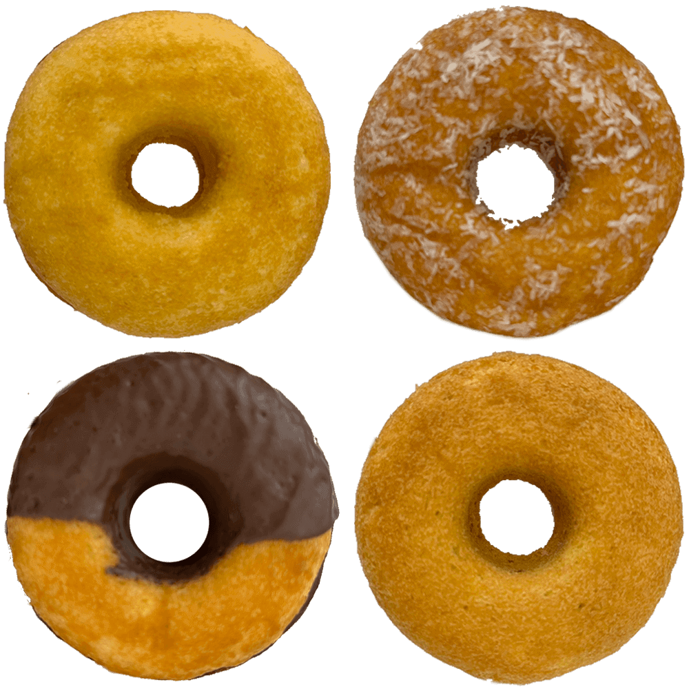 4 Overheerlijke assorti DonutCakes™. Per stuks verpakt.