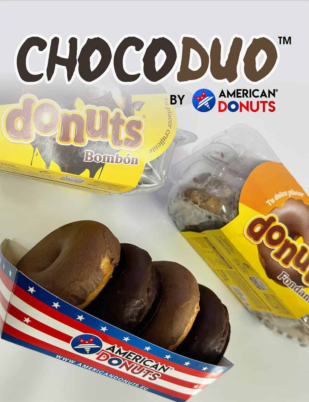 Squeeze out all the cocoa flavour with the ChocoDuo™ Double Duo mixed 4-Pack! Each multipack contains two dark chocolate, and two milk chocolate donuts.