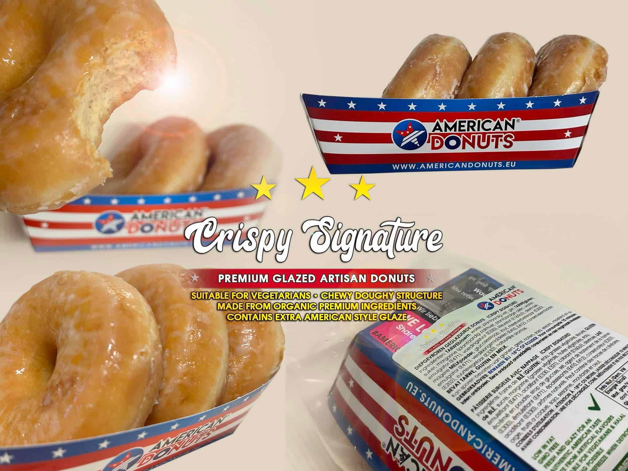 Premium Crispy Signature Donuts, American Styled with luxury natural and organic ingrediënts. A 3-Pack contains three large Crispy Signature™ American Donuts®. Ook verkrijgbaar als Megapack Bundle.